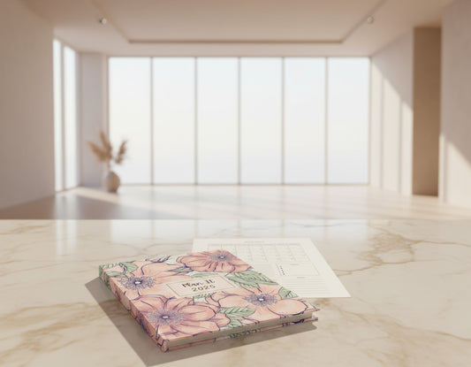 Plan It 2025 Pink and Grey Floral Planner